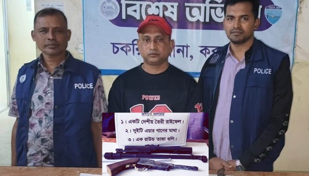 চকরিয়ায় অস্ত্রধারী গ্রেফতার : দেশীয় রাইফেল ও গুলি উদ্ধার