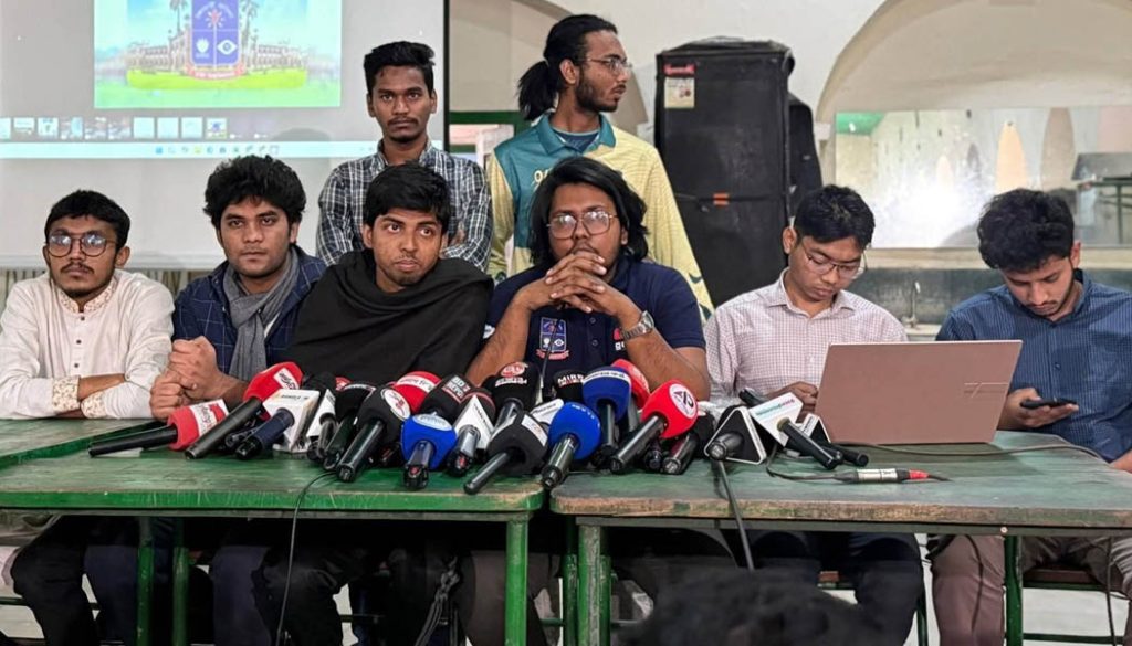 সংবাদ সম্মেলনে উপস্থিত ছিলেন ডাকসুর সমাজসেবা সম্পাদক এবি জুবায়ের, সাহিত্য ও সাংস্কৃতিক সম্পাদক মোসাদ্দিক আলী ইবনে মোহাম্মদ, কার্যনির্বাহী সদস্য সর্বমিত্র চাকমা, সদস্য মো. শাহিনুর রহমানসহ হল সংসদের নেতারা।