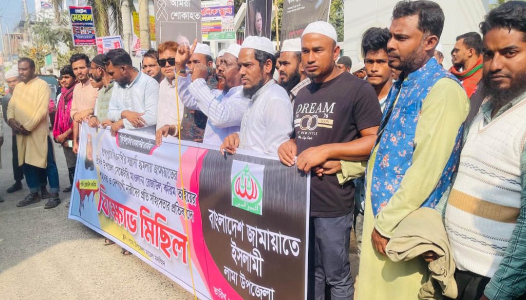 শুক্রবার (৩০ জানুয়ারী) শুক্রবার দুপুরে জামায়াতে ইসলামী লামা উপজেলা শাখার উদ্যোগে উপজেলা মডেল মসজিদ থেকে একটি বিশাল বিক্ষোভ মিছিল বের করা হয়। মিছিলটি উপজেলার প্রধান প্রধান সড়ক প্রদক্ষিণ শেষে এক সংক্ষিপ্ত সমাবেশের মাধ্যমে শেষ হয়।