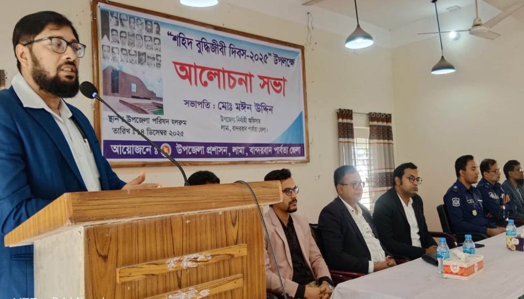 গভীর শ্রদ্ধা, ভালোবাসা ও ভাবগাম্ভীর্যের মধ্য দিয়ে বান্দরবানের লামা উপজেলা প্রশাসনের উদ্যোগে শহীদ বুদ্ধিজীবী দিবস-২০২৫ যথাযথ মর্যাদায় পালিত হয়েছে।