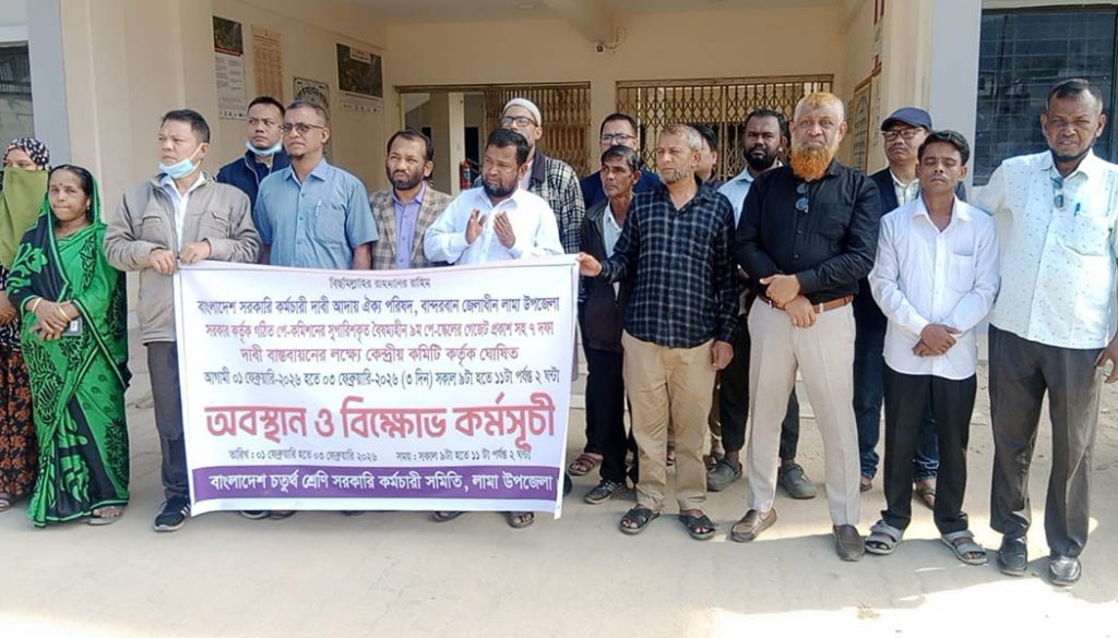লামায় ৭ দফা দাবিতে সরকারি কর্মচারীদের অবস্থান কর্মসূচি