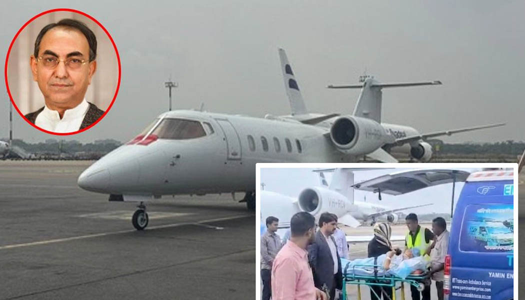 সিঙ্গাপুরের পথে মির্জা আব্বাসকে বহনকারী এয়ার অ্যাম্বুলেন্স
