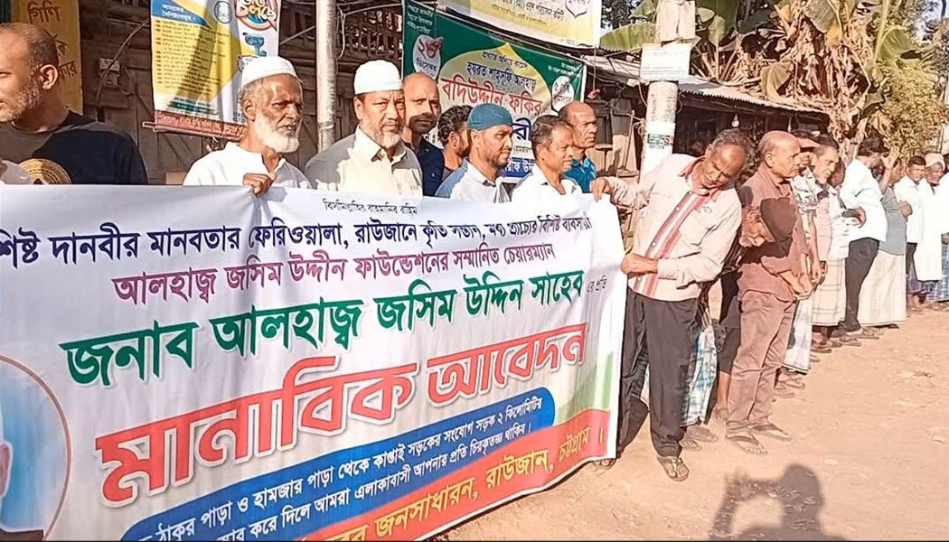 রাউজানে অবহেলিত সড়ক সংস্কারের দাবিতে মানববন্ধন