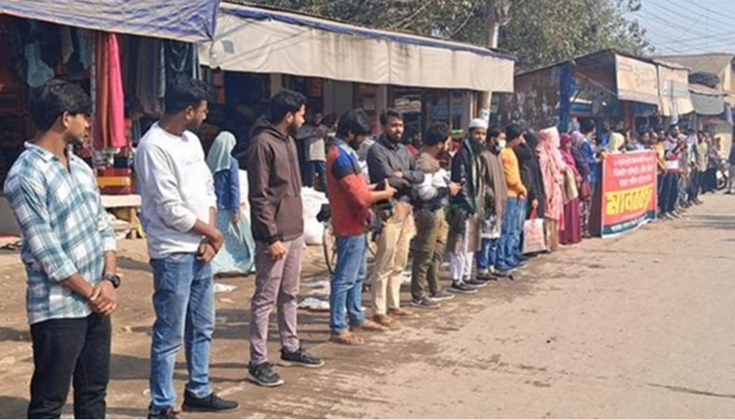 গাইবান্ধায় প্রাথমিক শিক্ষক নিয়োগ পরীক্ষা বাতিলের দাবিতে মানববন্ধন