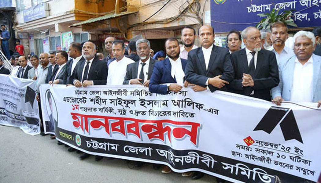 আইনজীবী আলিফ হত্যায় জড়িতদের বিচারের দাবিতে মানববন্ধন